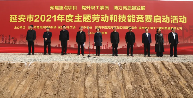 4月15日,延安市2021年度“聚焦重點(diǎn)項(xiàng)目 提升職工素質(zhì) 助力高質(zhì)量發(fā)展”主題勞動(dòng)和技能競(jìng)賽在陜建十三建集團(tuán)承建的南泥灣金伯利農(nóng)場(chǎng)項(xiàng)目工地舉行。
